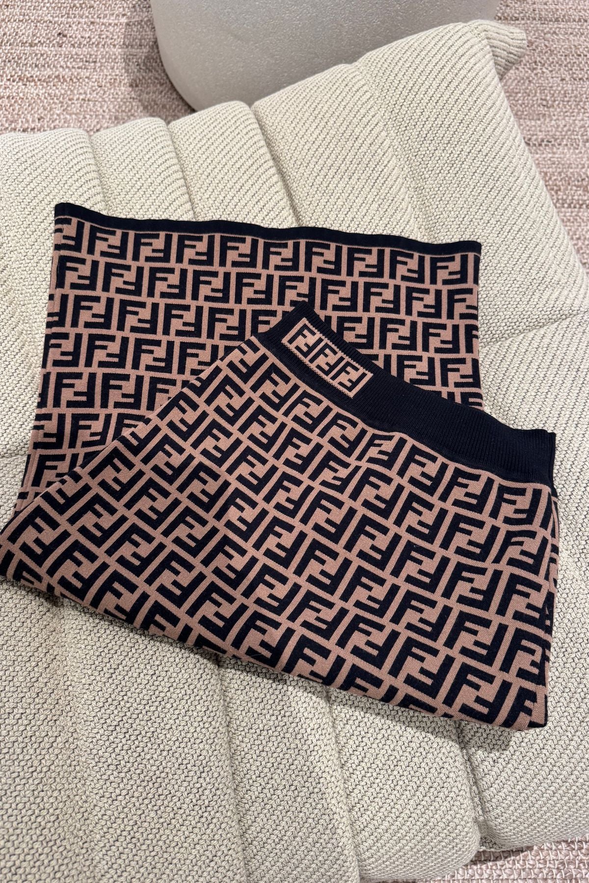 Kaufe dieses wunderschöne Fendi Set. Das Top sowie der Rock wurden nur sehr wenig getragen und sind in einem neuwertigen Zustand (s.h Fotos). Wunderschönes Material, Schnitt und Logo Details. Das Material ist dehnbar und passt sich perfekt dem Körper an.
