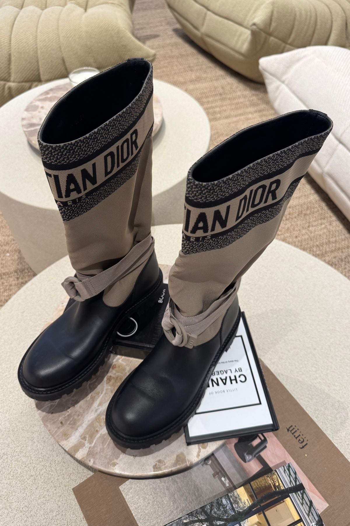 Kaufe diese wunderschönen limitierten Dior Boots. Die Schuhe wurden sehr wenig getragen und sind in einem neuwertigen Zustand. Gebrauchsspuren an der Sohle (s.h Fotos). Super kombinierbar zu allen Herbst / Winter- Looks. Sehr schöne Leder, Canva und Logo Details.