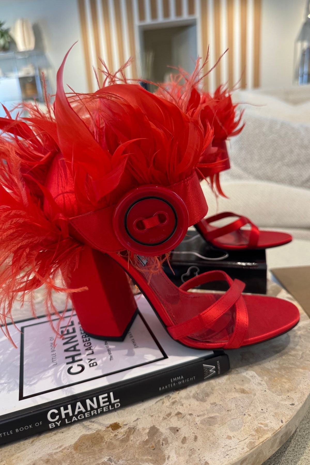 Kaufe diese wunderschönen limitierten Sandalen von Prada. Die Sandalen wurden sehr wenig getragen und sind neuwertig, leichte Gebrauchsspuren an den Sohlen (s.h Fotos). Stammen aus einer Limited Edition und sind mit wunderschönen Federn und Logo Details besetzt.